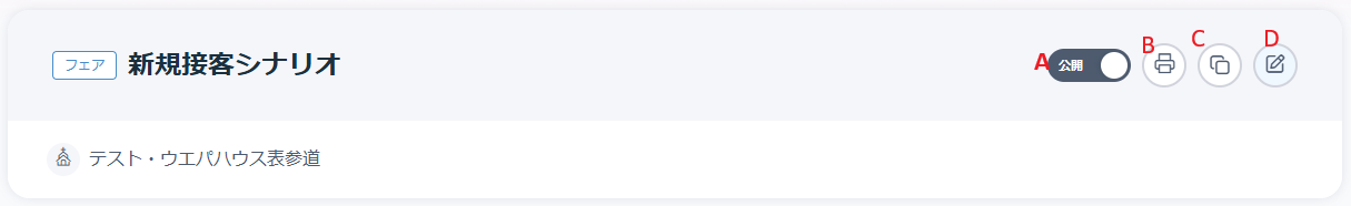 | C:コピー作成ボタン | 同じ内容のシナリオをコピー作成します | 企業アカウント、会場アカウントで表示・操作可能 |