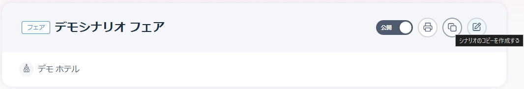 企業アカウントで作成した場合は、企業共通のシナリオ(配下会場すべてで閲覧と比較利用が可能)になります。