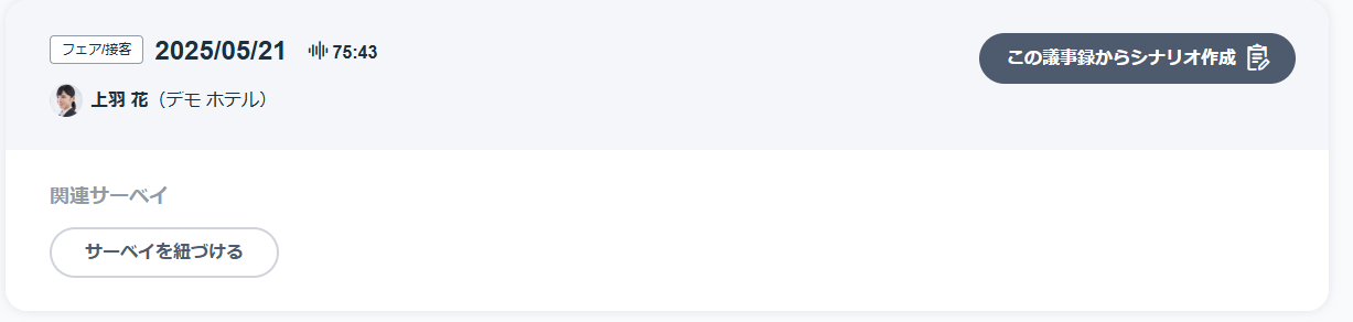 ・上部の議事録情報の部分に「この議事録からシナリオ作成」をクリックします。