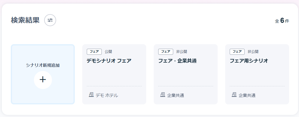 会場アカウントで作成した場合は、ログイン中の会場専用のシナリオになります。