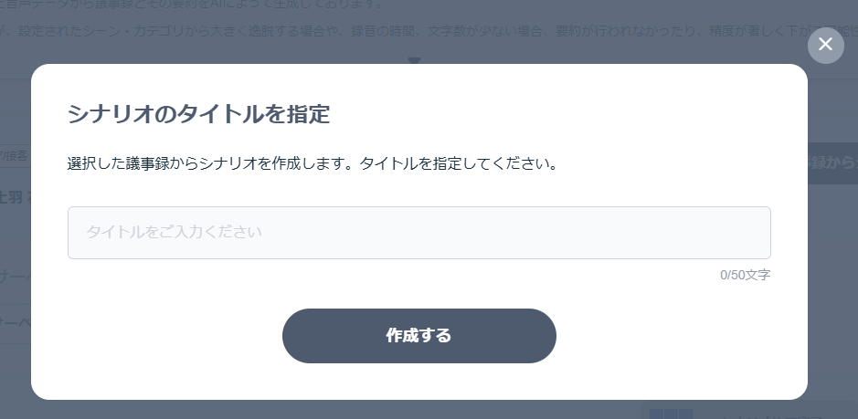※シーン「その他」の議事録からはシナリオ作成できません。