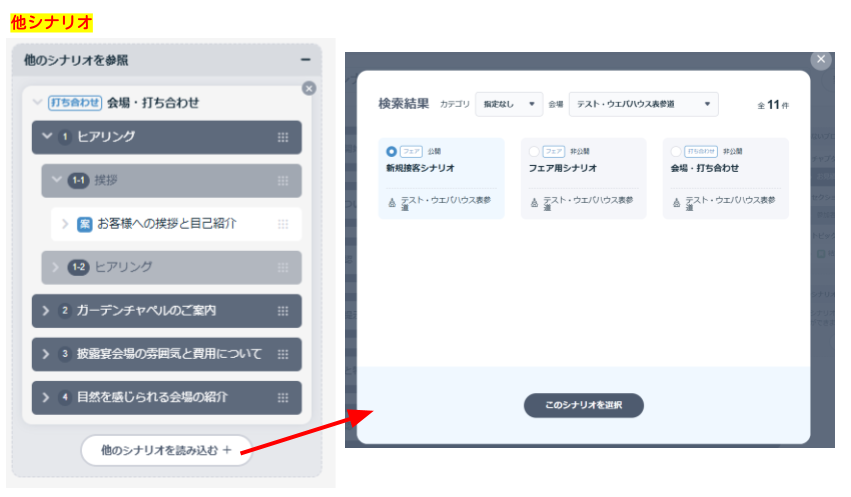 下部の「他のシナリオを読み込む」をクリックすると、企業共通および各会場のシナリオを選択できます。