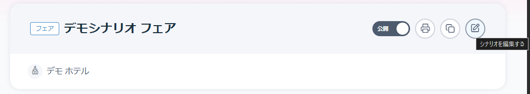 上記のとおり編集できるシナリオであれば、一番右側に編集リンクボタンがありますのでクリックしてください。